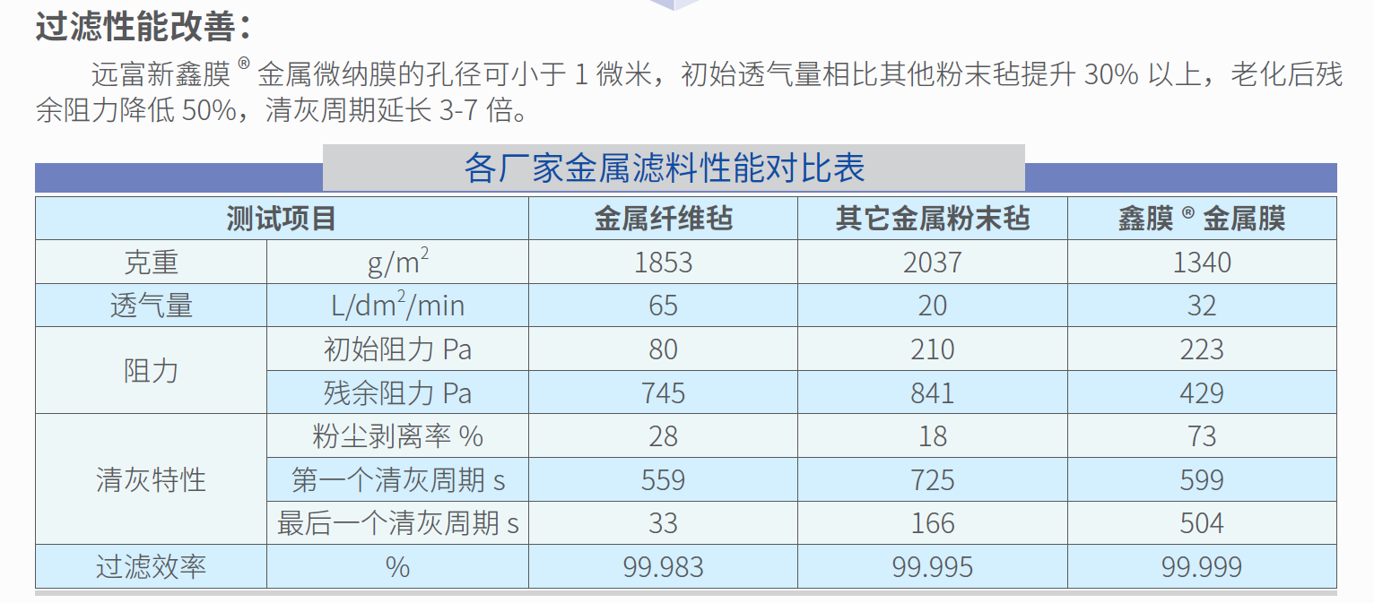3、低阻:過濾阻力低:表面光潔度高,反吹再生能力強,清灰周期較同類產(chǎn)品延長3-7倍,